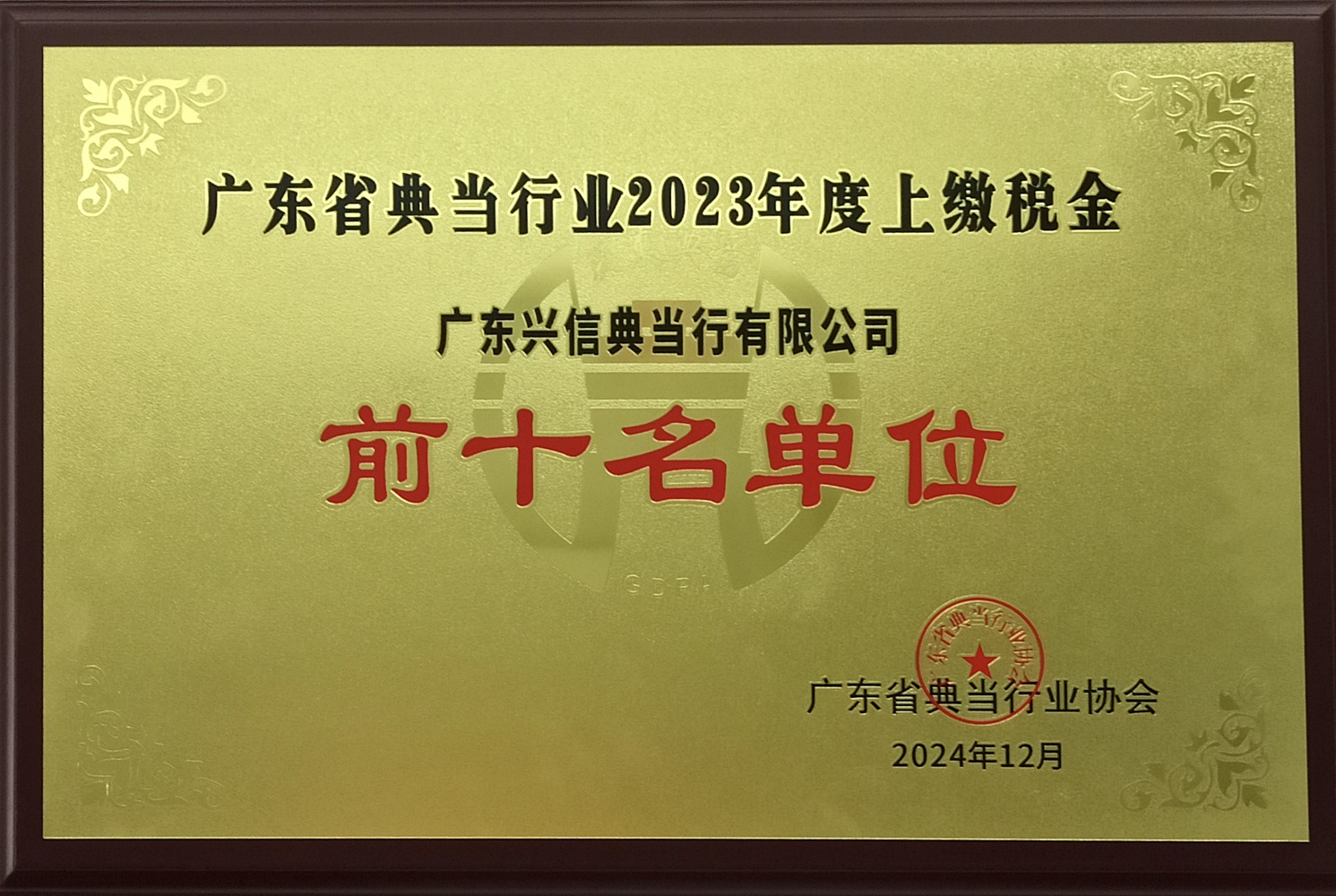 会上,协会表彰了“广东省典当行业2023年度上缴税金前十名单位”并授予荣誉牌匾。广东兴信典当行有限公司凭借一年来的努力奋斗和辛苦耕耘再次获此殊荣,热烈祝贺!